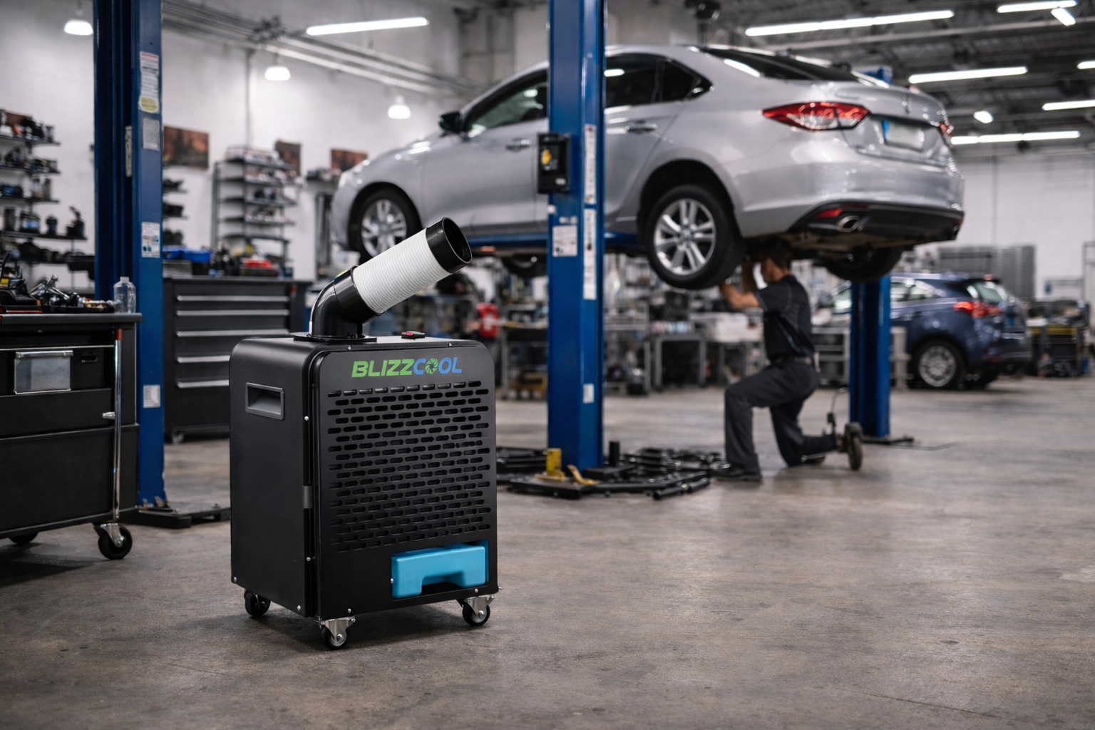 La máquina de aire acondicionado portátil industrial de Blizzcool se utiliza a diario en una amplia variedad de sectores. En naves industriales y centros logísticos permite concentrar el frío en puestos de picking, líneas de montaje o zonas de expedición sin necesidad de climatizar toda la nave, reduciendo drásticamente el consumo energético. En talleres de fabricación y plantas de producción, los modelos AC-3500/2 y AC-5300/3 trabajan con pleno rendimiento incluso cuando la temperatura exterior supera los 40 °C, gracias a su rango de servicio de hasta 45 °C.