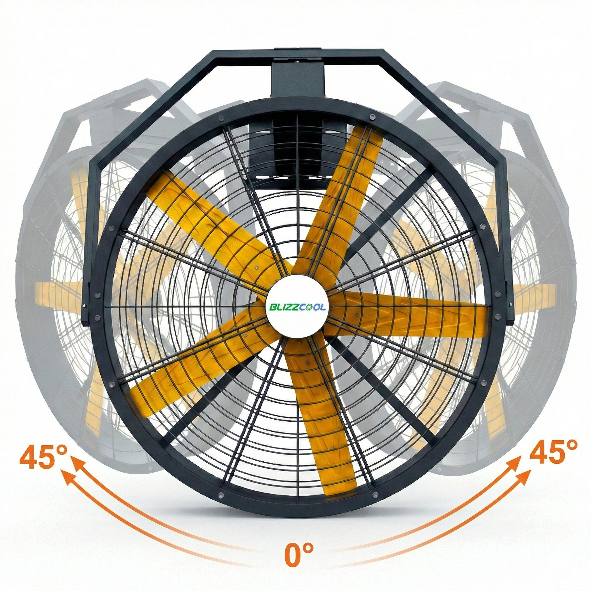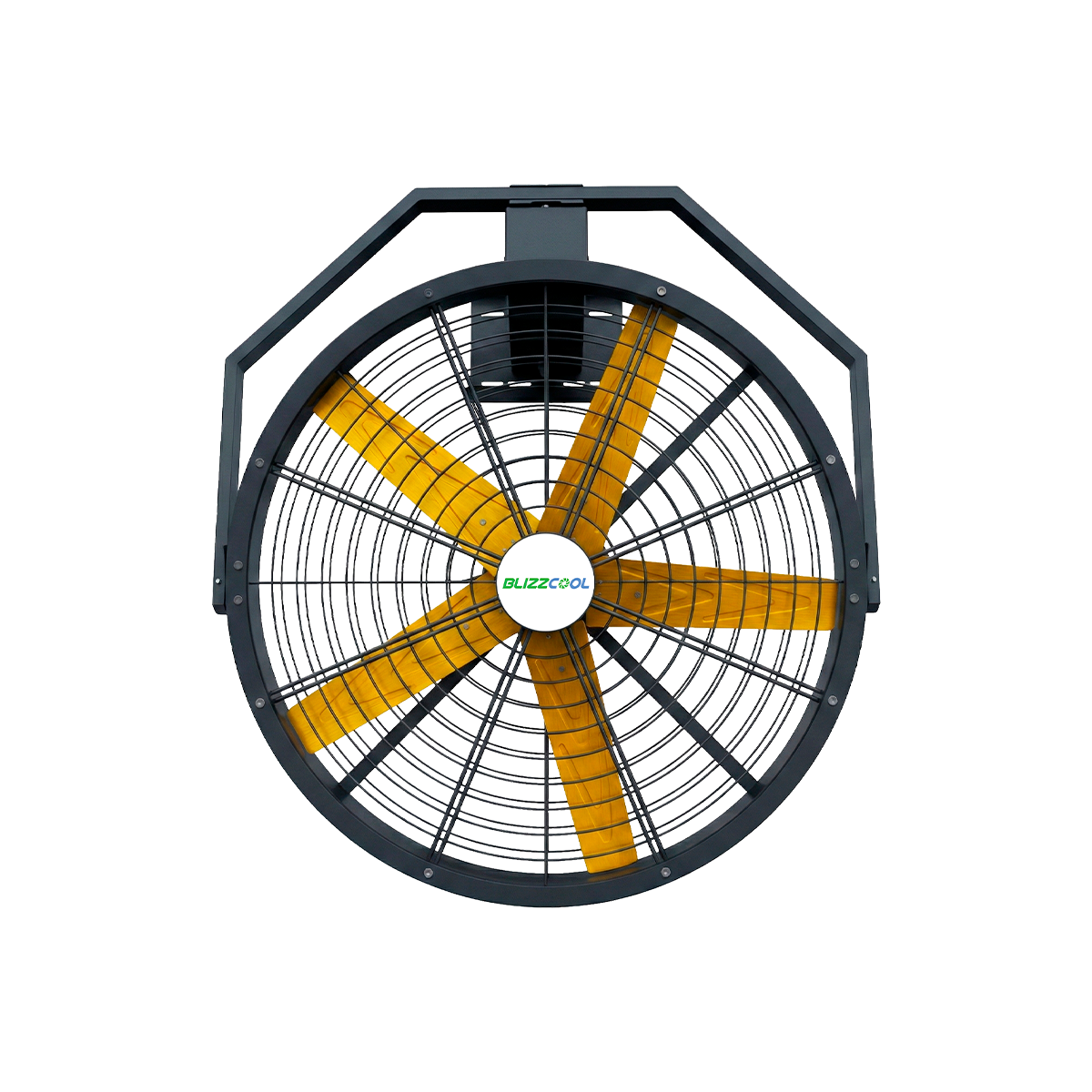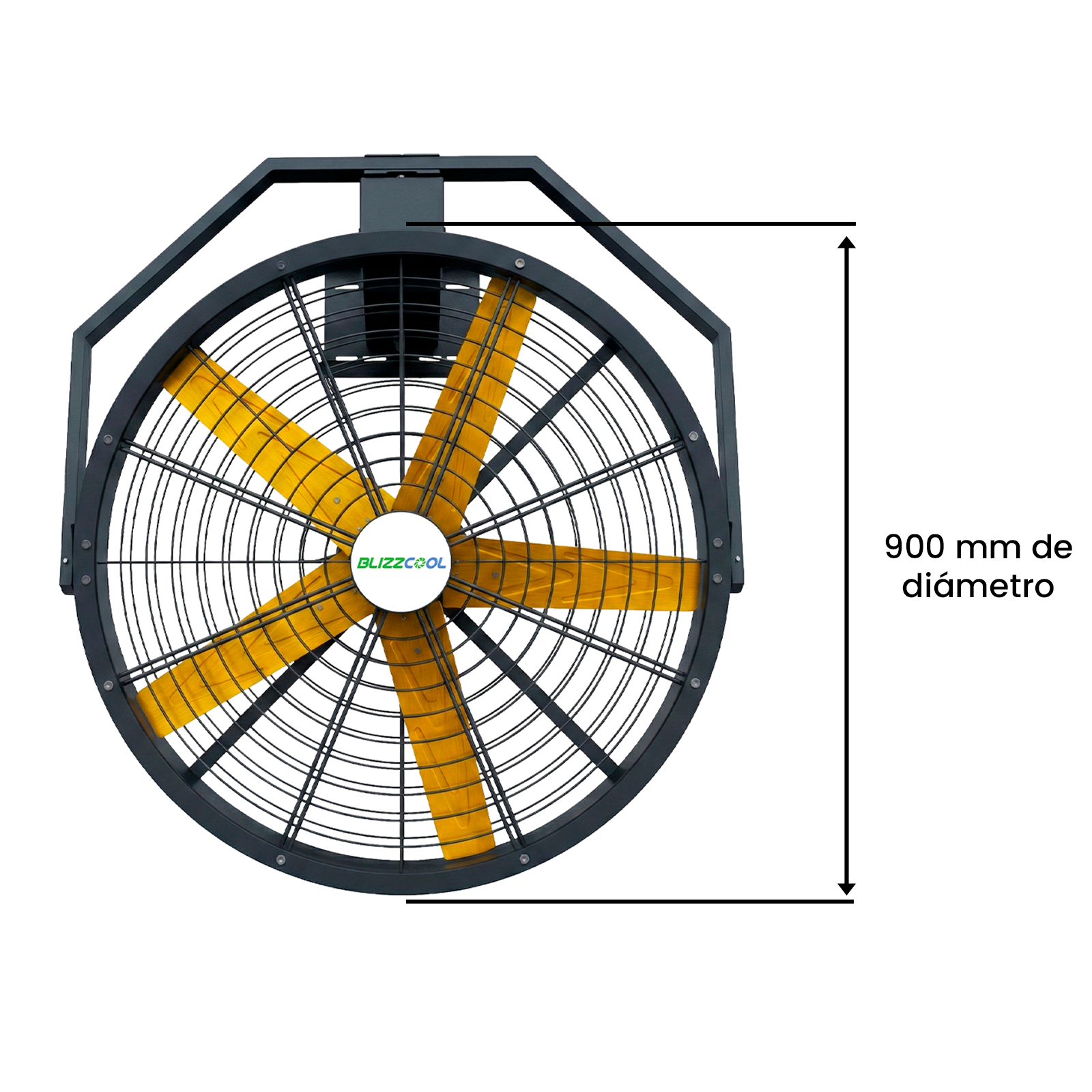 Ventilador industrial mural pensado para la ventilación continua de espacios industriales medianos. Adecuado para zonas de producción, gimnasios, áreas logísticas y espacios de trabajo donde se requiere eficiencia y bajo nivel sonoro.